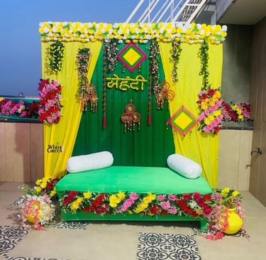 Bringing your mehendi celebrations to life with vibrant flower decorations that tell your story.